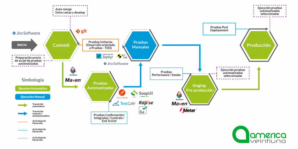 con un Pipeline automatizado de pruebas basado en el modelo América Veintiuno